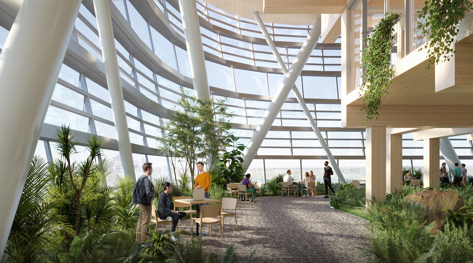 Sky gardens and landscaped terraces throughout the tower